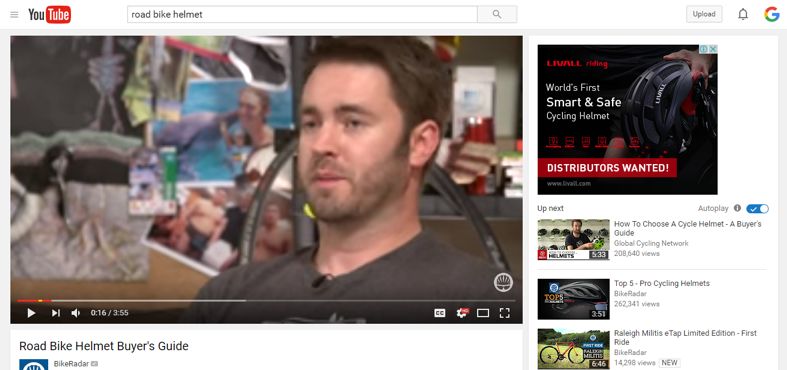 观看公路骑行视频的观众,也会看到右侧的 LIVALL 广告