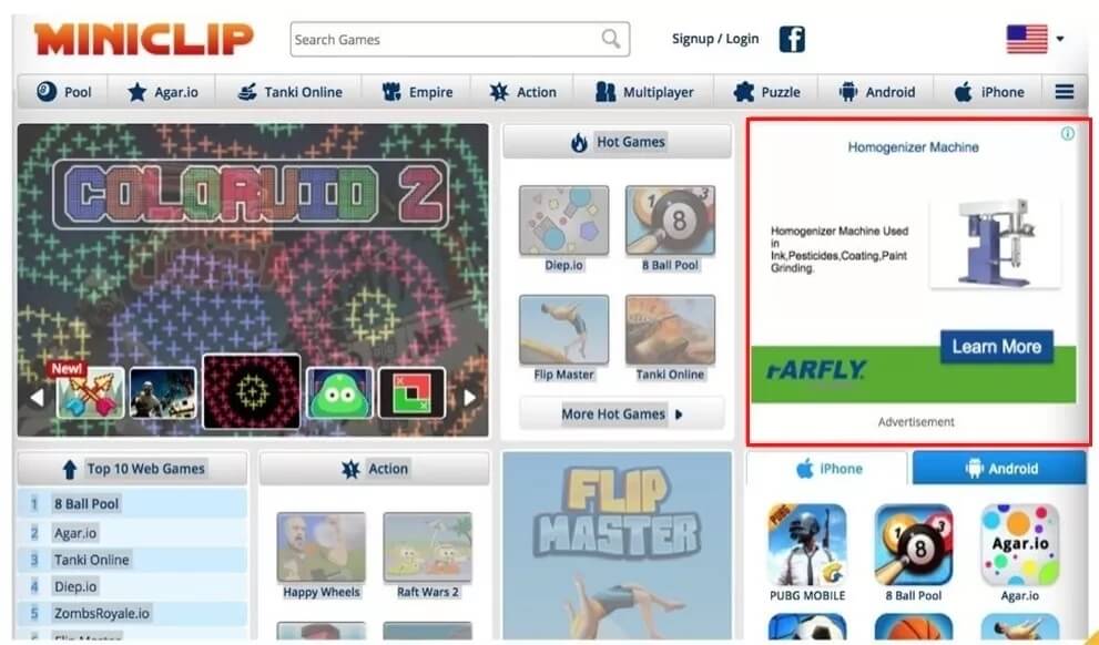 小游戏网站上展示的法孚莱广告